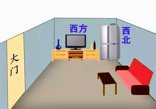 首先是西北方位。这个西北方位怎么定义呢?就是整间屋中心看去的西北方,而屋中心的找法,其实很简单:就是全屋对角线的交点。为什么说西北方位不可以摆电器呢?因为五行来说,电器属火,火为赤色,代表口舌、官非、脾气暴躁、冲动、好战、好胜、好动、不安、不满、情绪飘忽不定。同时,西北方从八卦五行来说,则属于金。在西北方摆电器,等于说,金被火克了,金本身的性质就发挥不出来,反而形成了"火金相战"的局面。要知道,金是最刚之物,火是最阳最燥之物。最刚最燥相遇,人就容易发脾气,况且西北属乾卦,为头部,一旦这个方位有电器,思维势必混乱。所以,如果你家里的西北方位有电器,比如冰箱,电视或洗衣机等,恐怕夫妻间的争吵,矛盾少不了。时间久了,恐怕还要面对更严重的问题。
