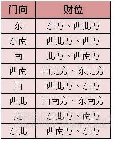 风水学中的财位虽然有很多不同的说法,但以八宅确定财位的方法应验率较高。八宅财位定位法: