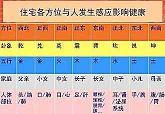 长子的方位:位于东方。想让长子将来有所作为,就须好好利用此方位。如果这个方位有残缺,将来就很难有发展。可利用此方位做成客厅、卧室,都能变成吉相。