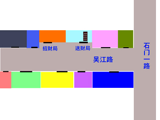 上海市吴江路小吃一条街曾经是上海著名的一条美食街,每天前往消费的食客络绎不绝,特别是周末和晚上更是会出现人满为患的现象。光临这条美食街的人虽然多,但是并不是每家餐馆生意都火爆。有这么两家相邻的餐馆,都是经营小炒,菜谱和口味都差不多,但是一家生意十分火爆,食客往往要在门外等待;而另一家门可罗雀,生意十分清淡,形成鲜明的对比。上海风水网刘丰年老师10多年前曾多次察看过这两家餐馆的风水,发现大不相同。从石门一路向吴江路走过去,这两家餐馆靠街中段的右边,并且都位于凹进去的那个部分(见上图)。