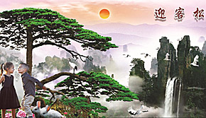 张老师一进门,首先看见的就是西面墙壁上的一幅大型“大鹏展翅”的玻璃镜画。进到以后,首先在东南边客厅的一幅“迎客松”的图画,引起了张老师的注意,“迎客松”图画上面还有还有一副一对一男一女的小孩,旁边有二只小白兔。“迎客松”的图画,迎客松向右边门口方向,伸出一枝树枝,象手一样,树丫上站着一只仙鹤。旁边有五只仙鹤向右边飞来,前面的一只仙鹤靠近树枝。
