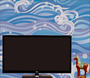 这家是一套三室一厅的房子。刚进入他们家,刘老师就发现房子装修时留下的两个比较严重的风水问题。主人装修房子时,在大门进门的右侧客厅与饭厅之间做了一个长方形的吧台,吧台上放了一些茶杯,吧台的上方也做了一个与吧台等长的小长柜子。这个形象组合起来好似一个张开的虎口,面向西方(见上图)。西方在八卦中属兑卦,为少女,而这家没有小女孩,就只能是房主的妻子了。看到这个问题,刘老师就说,这个装修对你的妻子很不利啊。主人一惊,没说什么。在饭厅的北边是一个停摆了的石英钟。来到客厅西边,刘老师发现,这边的墙上装修也存在风水问题,墙的背景是像水波一样的花纹,下面装有一个52英寸的液晶电视机,电视的右下边放有一个陶瓷马(见上图)。这个也是直接影响婚姻的装修格局。看到这两个问题,刘老师十分肯定地语气对他说:"你自从搬进这个房子后就与妻子闹矛盾,风波不断。目前与对象的关系已经破裂。"房子主人大为惊讶,这时才吐出了实情。他与对象原先感情较好,自从搬进这个房子后,就开始闹矛盾,几乎是五天一大闹,三天一小闹。目前已经分居,正在办理离婚手续。这次请我来的目的就是看是不是房子风水出了问题,婚姻还能不能挽救。接着,我对他们家内外风水环境进行了仔细勘测,又发现了一些风水问题,并进行了一一调整。